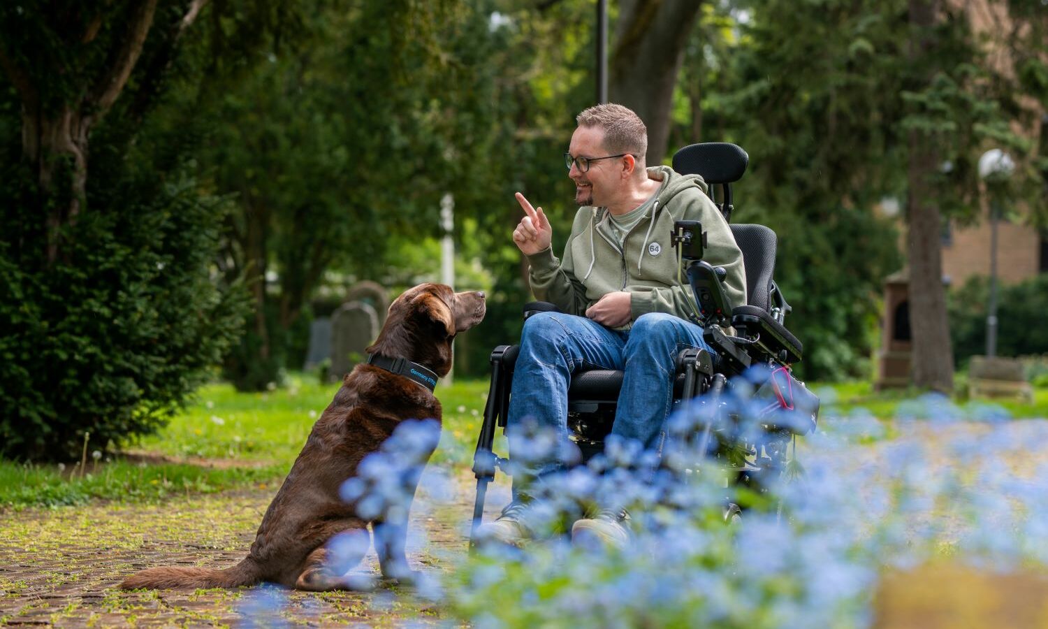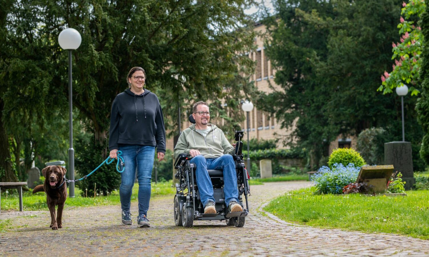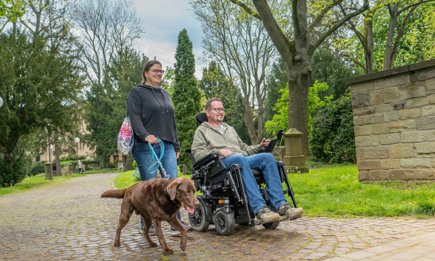Regen mag der braune Labrador Lucky nicht so wirklich gerne. „Er muss trotzdem mit mir raus an die frische Luft“, sagt Sebastian Till und lacht. Vor sieben Jahren bekam er die Diagnose Multiple Sklerose und sitzt seither oft im Rollstuhl, für ihn sind die Runden mit seinem Hund daher immer sehr wichtig. Vor allem der zu einem Park umgestaltete Alte Friedhof zwischen Rathaus und Schwabenlandhalle hat es ihm angetan.